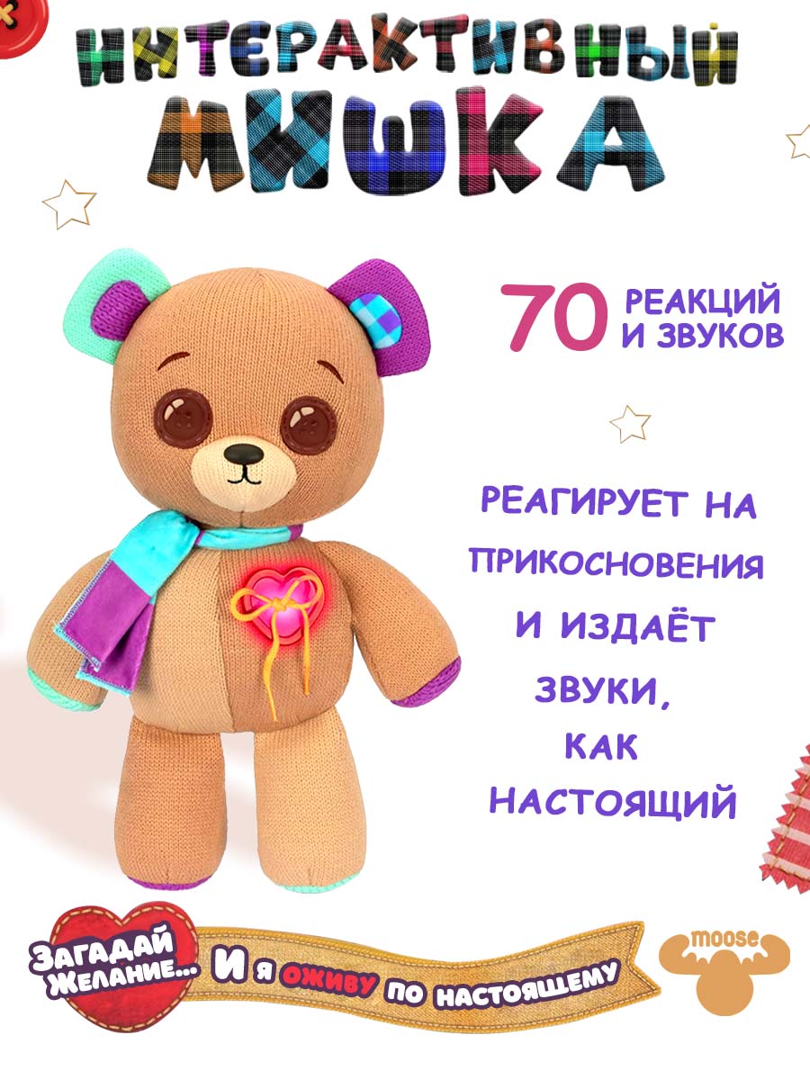 - Мягкая и приятная на ощупь ткань делает мишку не только интерактивным, но и комфортным для объятий, что делает его идеальным другом для сна и игр.