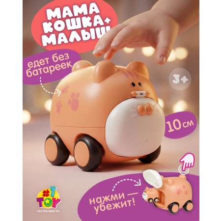 Машинка катапульта Кот 1TOY Убегай-ка — это оригинальная машинка детская, которая готова порадовать ребенка сюрпризом. На вид — это забавная кошечка, а внутри нее спрятан маленький котенок, который выскакивает наружу при нажатии на кнопку. Машинка детская игрушка оснащена фрикционным механизмом, поэтому Котик едет вперед после небольшого толчка, добавляя реалистичности в игру.