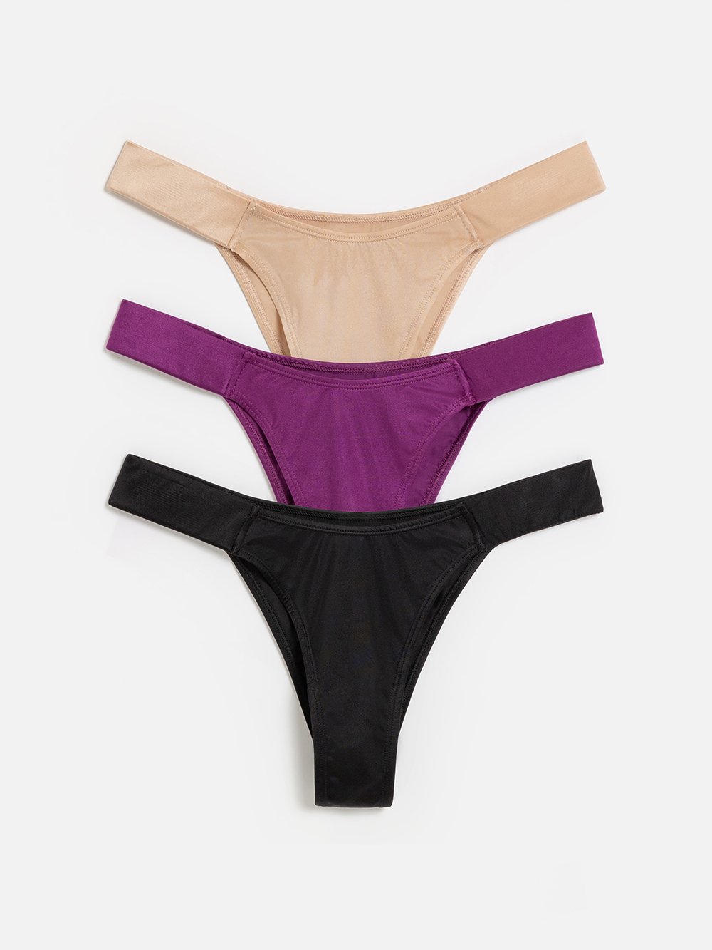Комплект из 3-х женских трусов стрингов-бразильяно выполнен из эластичной ткани, которая идеально облегает тело, обеспечивая комфорт и свободу движений. Модель высокой посадки создаёт утончённый и элегантный силуэт. Высокий вырез подчёркивает линии бедер и талии, придавая образу женственность. Ластовица изготовлена из 100%-ного хлопка, что добавляет мягкость. Задняя деталь открывает ягодицы, подчёркивая женственные изгибы фигуры. В комплект входят три разных цвета: чёрный, бежевый, фиолетовый, что позволяет разнообразить гардероб и создать несколько интересных луков каждый день. Стилизуйте трусы стринги-бразильяно с бюстгальтером для создания гармоничного комплекта.