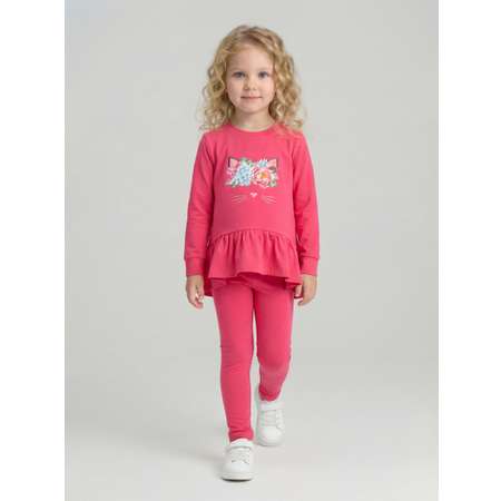 Комплект одежды для девочки KUZA состоит из туники и лосин. Костюм для девочки изготовлен из кулирки с эластаном (92% хлопок, 8% эластан).