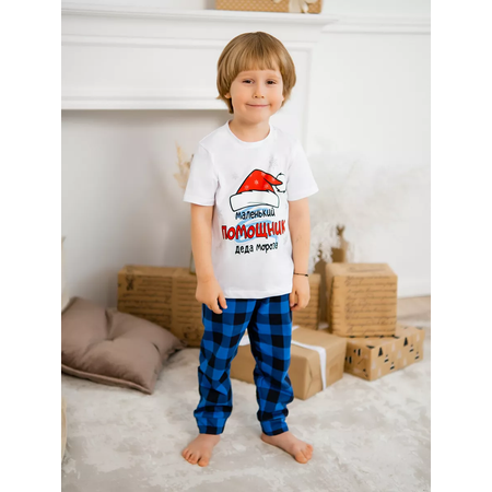 Новогодний костюм для детей и подростков представлен качественным набором домашней одежды, включающим кофту с длинным рукавом и штаны. Эта новогодняя пижама изготовлена из хлопка, что обеспечивает комфорт и тепло. Принт на одежде отражает рождественскую тематику, создавая праздничное настроение в новый год. Темный синий цвет подходит для мальчиков. Модель подойдет для малышей и подростков благодаря разнообразию размеров. Детская пижама с новогодним дизайном отлично сочетается с домашним стилем и удобна для повседневного использования во время зимних праздников. Одежда сохраняет тепло и комфорт благодаря натуральным материалам и продуманному крою рукавов и штанов. Такой костюм станет практичным выбором для создания уютной атмосферы в холодное время года.