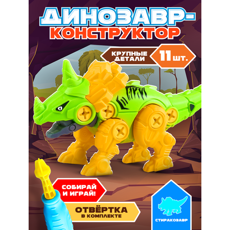 Развивающий конструктор динозавр Трицератопс с отверткой
