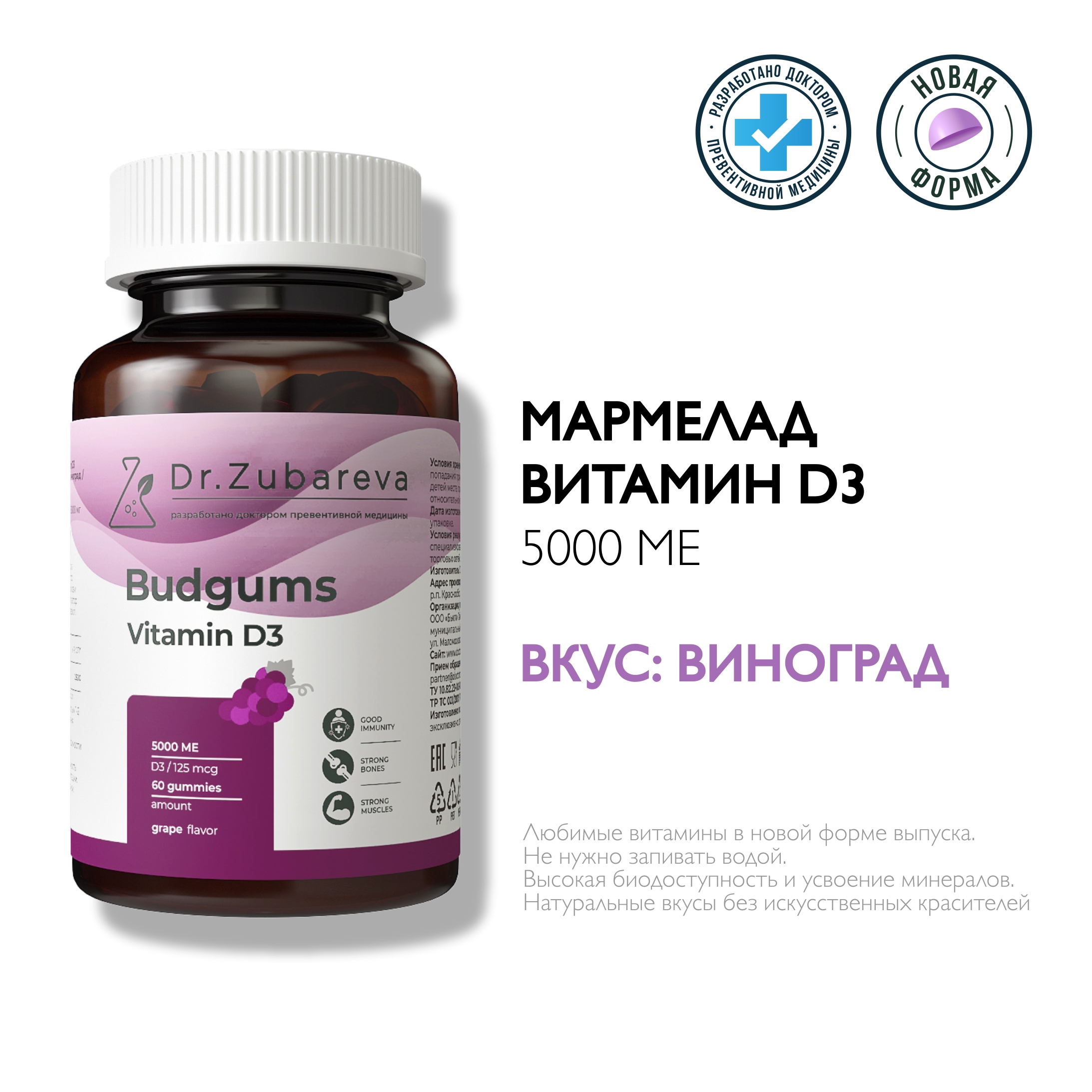 Высокая терапевтическая концентрация витамина Д3 виноград в пастилках от Dr.Zubareva обеспечивает видимый эффект от курсового приема БАДа: