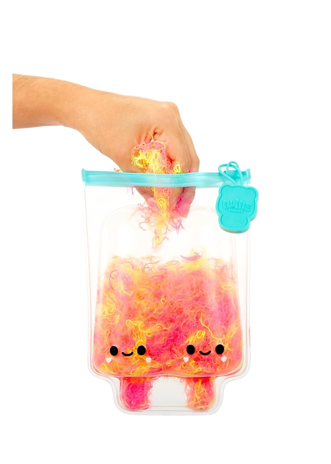 Fluffie Stuffiez Treats Family — очаровательное пушистое мороженое, которое скрывает в себе сюрприз. Если «ощипать» шерстку игрушка изменится! Слои ворса можно снимать по-разному: например, сделать персонажу брови или необычную прическу — отличный способ проявить фантазию. Для хранения ворсинок в комплект входит прозрачная сумочка с глазками и ротиком — при заполнении она станет второй игрушкой.