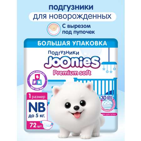 Цена на Подгузники Joonies Premium Soft NB (до 5 кг) 72 шт. - 1099 ₽.