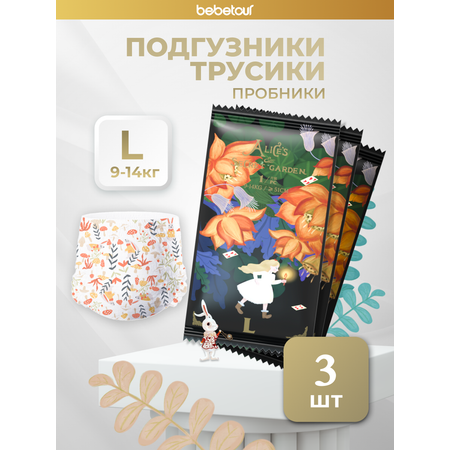 Подгузники трусики Bebetour Alice's secret garden, набор пробников L, 9-14 кг, 3 шт.