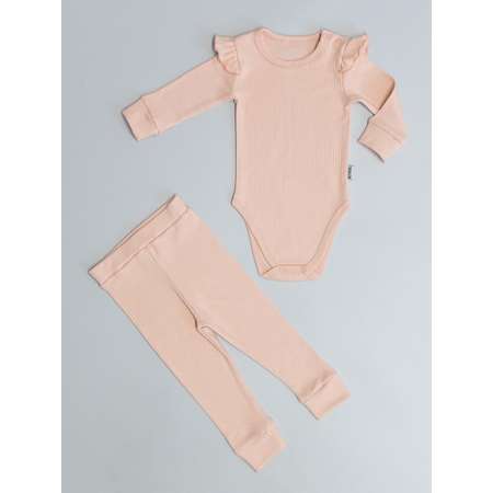 Комплект для девочек. Боди с длинным рукавом, рюшами и застежкой на плече и штанишки "в рубчик". Прекрасно подойдет для дома или прогулки.