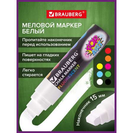 Стираемый меловой маркер "POP-ART" белого цвета от BRAUBERG – это идеальный инструмент для создания ярких рисунков и надписей на гладких поверхностях. Этот маркер выделяется своим круглым корпусом и диаметром 29 мм, что обеспечивает удобство в использовании для детей и взрослых. Чернила на водно-меловой основе безопасны и не имеют резкого запаха, что делает их подходящими для школьных занятий и творчества. Толщина линии варьируется от 2 до 15 мм в зависимости от угла наклона, что позволяет легко создавать как тонкие, так и широкие линии.