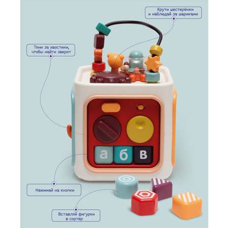 Развивающий кубик для малышей — это 6 интерактивных сторон для развития слуха, мелкой моторики и логического мышления. Разноцветные детали, безопасные материалы и отсутствие острых углов делают этот кубик отличным подарком для маленьких исследователей — его интересно рассматривать, трогать и играть с каждой стороной.