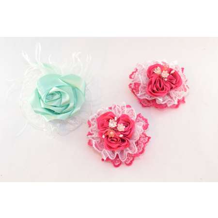 Набор заколок для волос. Ручная работа. Основной состав: полиэстер. Страна производства: Россия. Количество в наборе: 3 Размер украшений: 13*13, 9*9