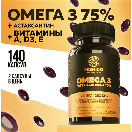 БАД к пище MISHIDO ОМЕГА-3 ультра 75%+Астаксантин+АDE 850 МГ 140 капсул