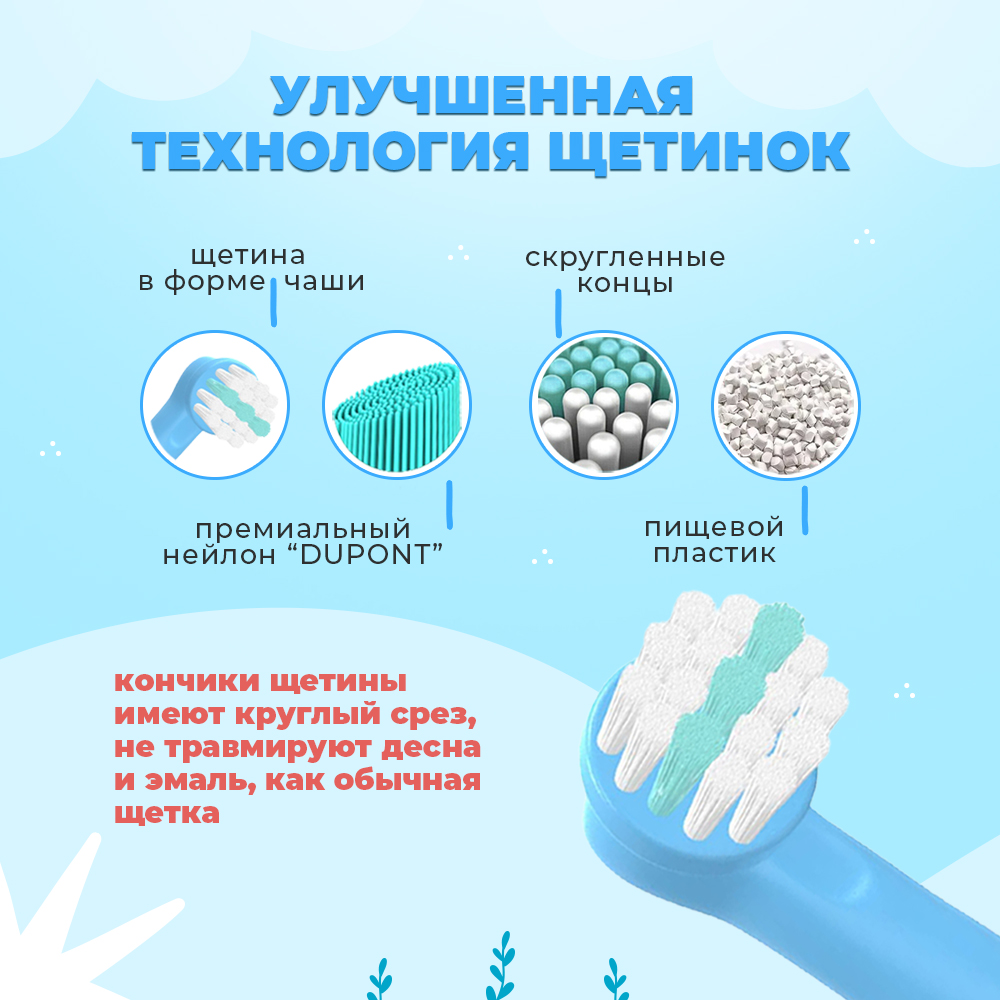 Детские насадки для зубной щетки совместимые с Oral-b 3+: забота о здоровье и красоте ротовой полости вашего ребенка! Когда речь заходит о здоровье зубов и полости рта, особенно важно обратить внимание на детей. Ведь их зубки только начинают формироваться, и правильный уход за ними - это залог крепких и здоровых зубов на всю жизнь. Для этого мы предлагаем вам детские насадки для зубной щетки, специально разработанные для детей от 3 лет и старше. Насадки изготовлены из высококачественного нейлонового материала, который не только эффективно очищает зубы, но и бережно заботится о деснах вашего малыша. Они идеально подходят для использования с электрическими зубными щетками Oral-b, в том числе моделью 3+, что обеспечивает максимальную совместимость и удобство использования. Наши насадки оснащены специальными щетинками, разработанными с учетом особенностей детской полости рта. Они не травмируют эмаль и десны, обеспечивая при этом эффективное и глубокое очищение. Каждая щетинка изготовлена из качественного нейлона Dupont, что гарантирует долговечность и эффективность использования. Детские насадки - это не только средство для ухода за ротовой полостью, но и забавные аксессуары, которые понравятся вашему ребенку. Они имеют яркий и привлекательный цвет, сделанный специально для детей. Ваш малыш будет в восторге от использования этих насадок и воспринимать процесс чистки зубов как игру. Выбирая детские насадки для зубной щетки совместимые с Oral-b 3+, вы делаете правильный выбор для здоровья и красоты зубов вашего ребенка. Не откладывайте заботу о детской полости рта на потом - начните заботиться о здоровье своего ребенка уже сейчас! Насадки для зубной щетки - здоровый уход для вашего ребеночка! Ultra мягкие щетинки, специально разработанные для малышей, помогут создать привычку заботиться о своих зубах с самого детства. Детская зубная щетка насадка Pro Kds - выбор заботливых родителей и здоровых детей!