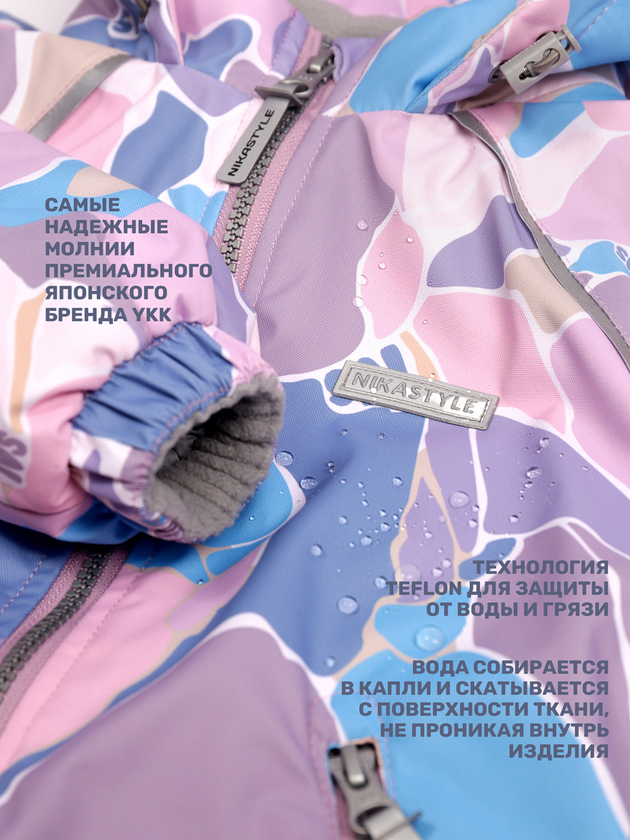Комбинезон детский весна осень с системой роста на один размер (длина рукавов и брючин увеличивается на 4-5см). Комбинезон для девочки из мембранной ткани 5000/5000 с водо- грязеотталкивающей технологией TEFLON. Мембранная ткань это непродуваемый и водонепроницаемый материал, который надежно защитит от ветра и влаги. Благодаря дышащим свойствам мембраны комбинезона весеннего осеннего непромокаемого ребенку будет комфортно в любую погоду, и он не вспотеет. Ткань комбинезона утепленного для девочки обработана снаружи экологически чистым протектором TEFLON для защиты от воды и грязи. Мембрана влагозащитного комбинезона на замке для малышей в сочетании с утеплителем нового поколения FIBERlite сохранит тепло во время прогулок, позволит телу дышать. Хлопковая подкладка растущего комбинезона обеспечит повышенный комфорт для самых маленьких детей, а также посещающих детский сад. Модный стильный комбинезон демисезон оснащен длинной центральной застежкой молнией с ветрозащитной планкой, которая обеспечивает легкое одевание малыша. На капюшоне есть кулиса для регулировки объема. Слитный комбинезон с принтом снабжен резинкой на спинке для создания силуэта, а внутренние бретели (лямки) позволят снять верхнюю часть изделия в помещении. Комбез мембранный водонепроницаемый дополнительно оснащен манжетами на резинке, внутренняя сторона манжета выполнена из флиса. А также карманами на молнии, силиконовыми штрипками и светоотражающими элементами для безопасности ребенка в темное время суток. Шов сидения проклеен, низ брюк на резинке. В водоотталкивающем теплом комбинезоне для малыша предусмотрена СИСТЕМА РОСТА. Можно удлинить рукава и штанины, удалив строчку на подкладке и комбинезон подрастет вместе с ребенком. Размеры подойдут для детей до года, на 1 годик, а таже для детей постарше, которые ходят в садик: рост с 86 до 98 см. Верхняя одежда для девочки арт. 8м1025 ИРИСЫ. Комфортная температура эксплуатации от -5°С до +10°С. Гарантийный срок 30 календарных дней.