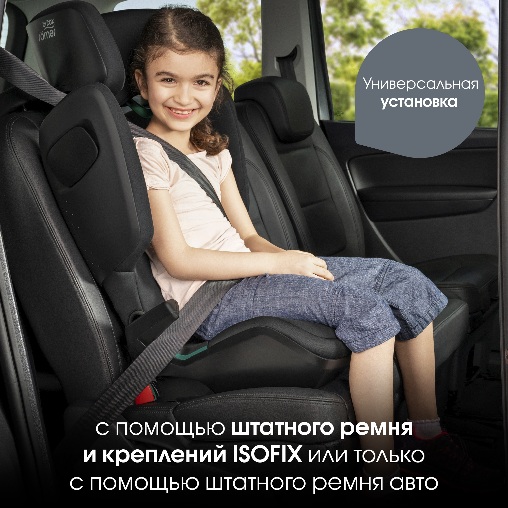 - Гибридная установка: с помощью штатного ремня и ISOFIX или только с помощью штатного ремня, если крепления изофикс в машине отсутствуют. В обоих случаях юный пассажир фиксируется в кресле с помощью штатного ремня безопасности автомобиля и SecureGuard.