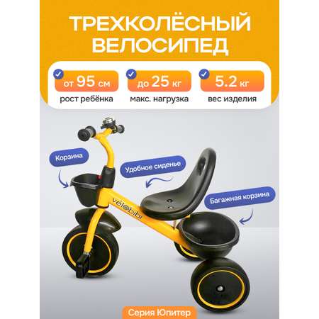 Велосипед трёхколесный ЮПИТЕР (колеса EVA 10"/8") жёлтый (Арт. ВЛ-2577)