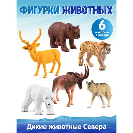 В набор "Дикие Животные Севера" входят: белый медведь – 11,5 см, горный козел – 13 см, койот – 13 см, бурый медведь – 11,5 см, тигр – 15 см, олень – 12 см