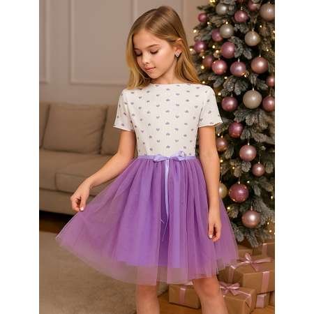 Короткое платье в рубчик станет незаменимым компаньоном для торжественных мероприятий. Белое платье с сердечками поможет создать волшебный образ. Пышное платье длины мини выполнено из мягкой хлопковой ткани с добавлением полиэстера и эластана, что делает его эластичным и комфортным. Юбка из фатина и подкладка из 100% хлопка дарят легкость и невесомость.