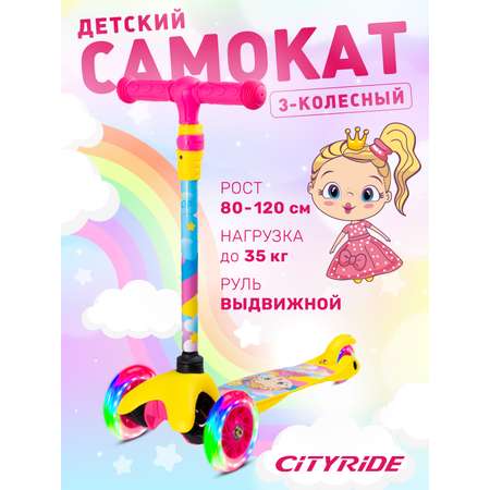 Самокат детский трехколесный CITYRIDE 120/76 со светящимися колесами CR-S4-05PYW