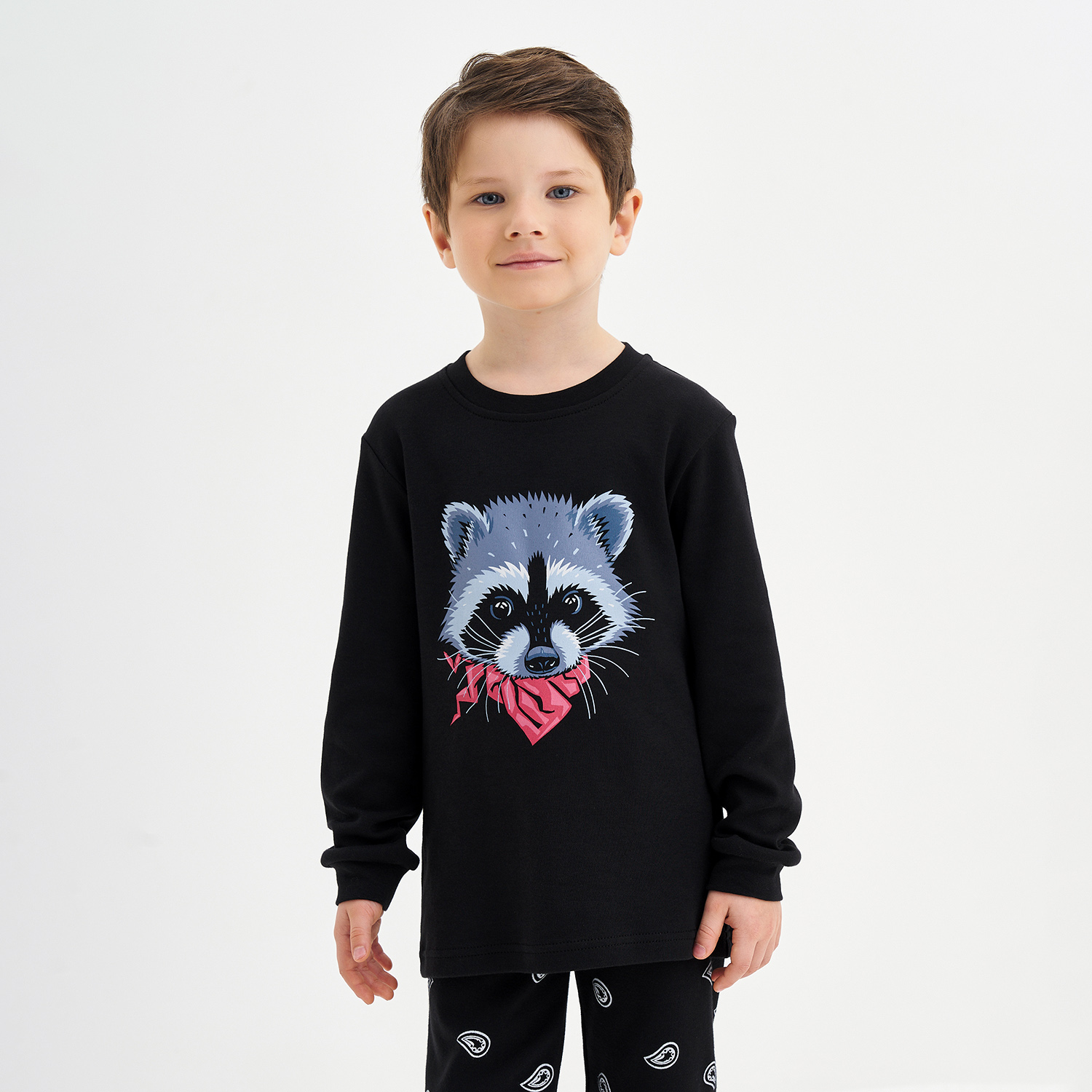Уютная пижамка для мальчика из высококачественного натурального материала – идеальный выбор для детей и подростков. Мягкий дышащий хлопок приятен на ощупь и оптимально регулирует теплообмен. В хлопковой одежде комфортно в любой сезон – не жарко и не холодно. Пижама для девочки со штанами и кофтой станет отличным домашним комплектом или же прекрасным вариантом в садик. Благодаря универсальному фасону и дизайну пижама подойдет и для мальчиков, и для девочек. Полуприлегающий крой не сковывает движений, а продуманные конструктивные особенности обеспечивают дополнительный комфорт. Эластичная резинка на поясе не сдавливает живот. Удобная горловина позволяет без труда надевать и снимать вещь. На брюках и длинных рукавах предусмотрены манжеты. Эти детали способствуют аккуратной посадке на любую фигуру и дают возможность менять длину изделия. Пижаму для детей украшает необычный и привлекающий внимание принт с енотом. Рисунок выполнен специальными водными красками, которые оставляют ткань воздухопроницаемой и сохраняют все ее свойства. В линейке детские и подростковые размеры от 4 до 14 лет.