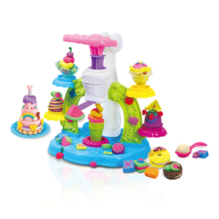 Здесь готовят самые вкусные угощения, а особенно — мороженое! Слепленное из теста-пластилина, оно напомнит о жарком лете и подарит долгие часы весёлой игры, даже если за окном мороз. Формочки и аксессуары помогут создать десерты любой формы, а чтобы начать, малышу просто надо загрузить тесто-пластилин в волшебный механизм фабрики и нажать на ручку. Какой сладкий шедевр в меню сегодня?