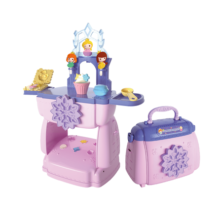 Прекрасный замок для настоящих принцесс! Здесь можно устраивать балы, вечеринки и придумывать волшебные истории. С помощью теста-пластилина девочка сможет украсить дворец фигурками, создать обитательниц, которые легко крепятся к замку с помощью палочек, и «приготовить» угощения. А главное — набор удобно складывается в сумочку, чтобы волшебство было легко носить с собой!