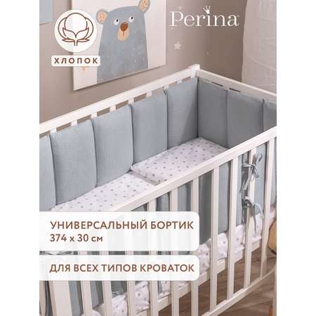 Новинка от Perina — нежные и практичные бортики, которые подойдут для любого спального места: прямоугольного, круглого или овального. Чехлы из натурального хлопка Eco Soft Cotton. Это очень мягкая разновидность хлопка, который отлично пропускает воздух и долго остается как новый даже после многократных стирок. Его секрет в специальном способе создания узора без окрашивания.