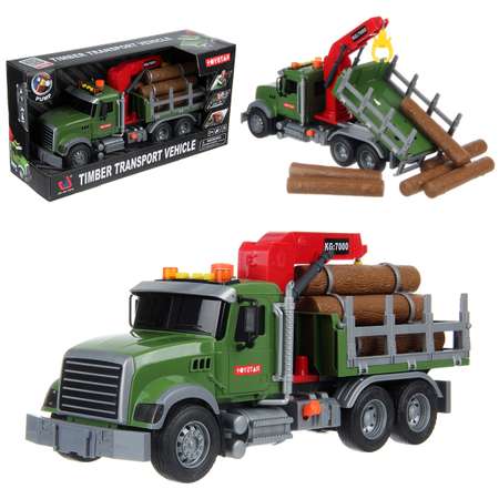 Большая машина лесовоз с подвижными элементами и широким функционалом. Игрушечная машина издает звуки гудка, имеет эффектную подсветку фонарей на крыше.