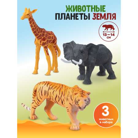 В набор "Дикие Животные " входят: тигр - 15 см, жираф - 14 см, слон - 13 см.