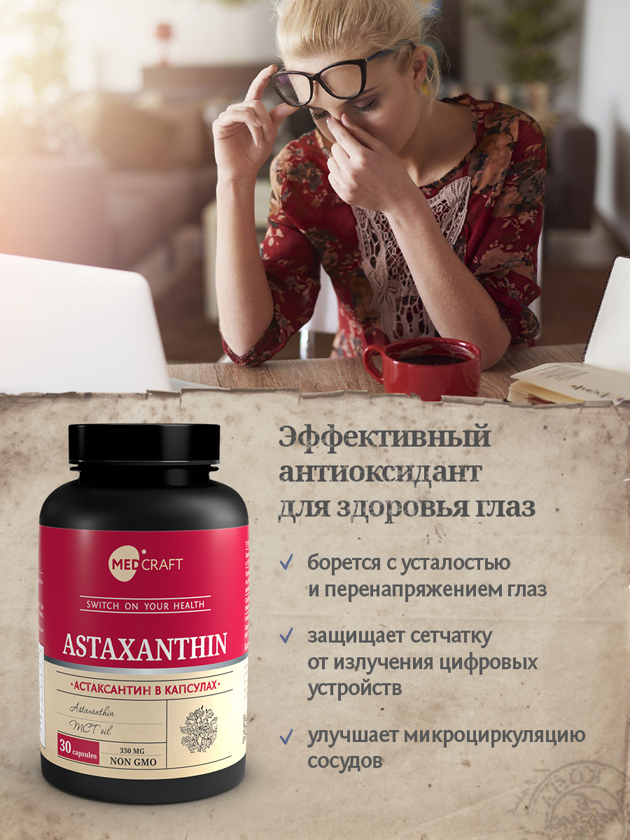 - Можно ли совмещать Astaxanthin Med Craft и другие витамины для зрения? Да, никаких противопоказаний для совместного приема нет.