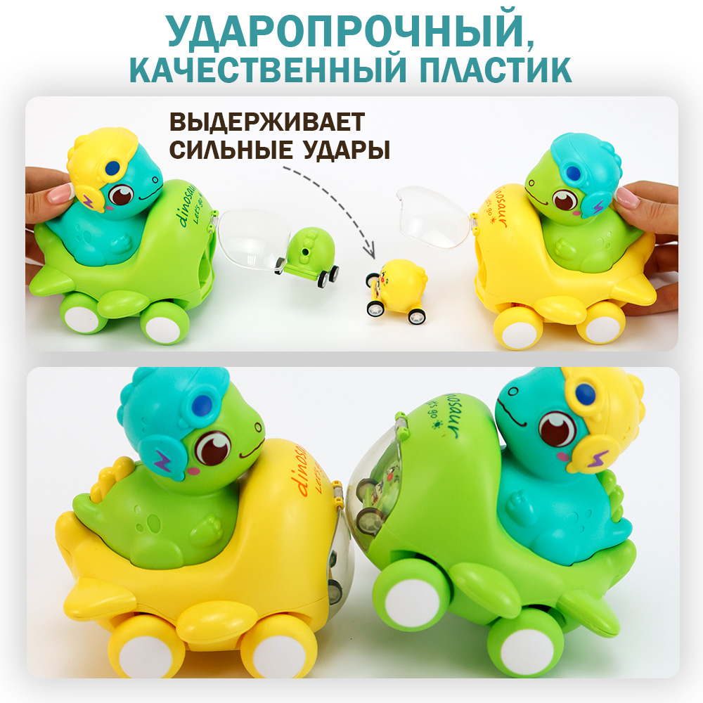 НОВИНКА! Милые мультяшные зверюшки Динозавры станут хорошей альтернативой в игре не только мальчикам, но и девочкам, которые любят катать машинки. Достаточно легко подтолкнуть динозаврика, чтобы он начал убегать. Инерционная игрушка не оставит равнодушным ни одного ребенка. Уникальная особенность этой игрушки: за закрывающимся окошком внутри большой машинки сидит малыш, который самостоятельно покатится вперед, если ребенок нажмет на спинку динозавра. Две игрушки в одной с элементом конструктора – это весёлое проведение времени вместе со взрослыми или сверстниками. Сочетание транспорта и доброго животного погружает в мир фантазий, развивает воображение и отлично впишется в любой сюжет игры. Динозавры Мама и малыш представлена в различных расцветках: зелёная, бирюзовая, жёлтая. Соберите всю коллекцию и устройте весёлые соревнования зверят.
