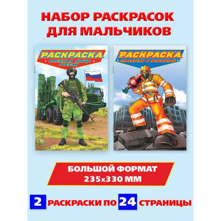 Раскраска Проф-Пресс большая для мальчиков 2 шт. Военная мощь России+спасатели и пожарные