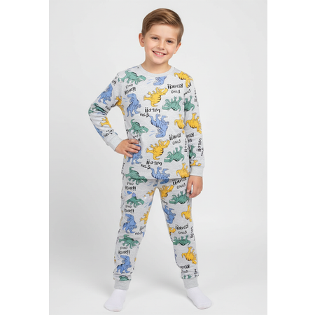 Пижама для мальчика состоит из джемпера и брюк. Пояс брюк на резинке.