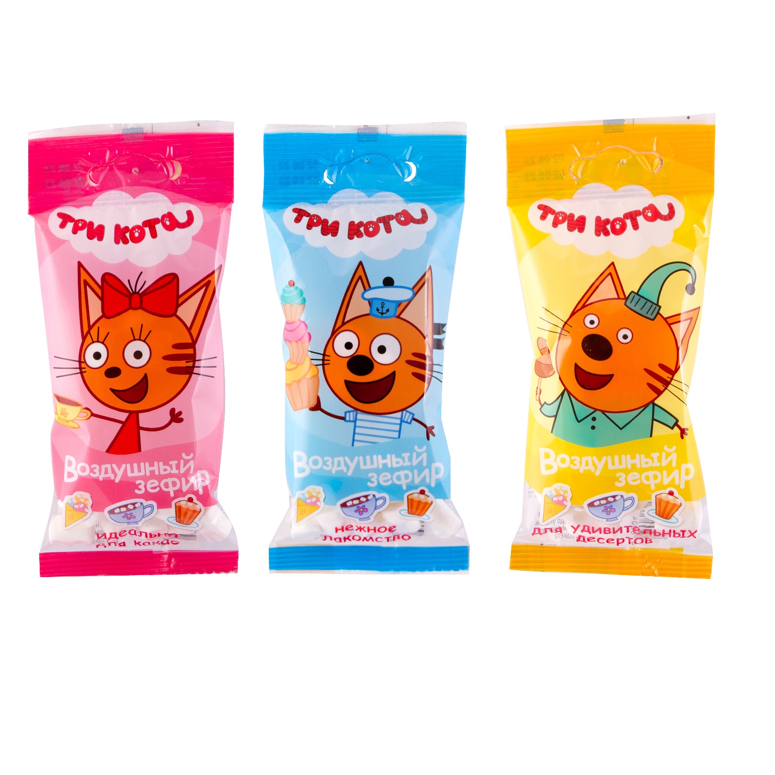 Воздушный зефир для какао и десертов «Три кота» от группы компаний «Сладкая сказка» обожают маленькие сладкоежки и поклонники одноименного мультфильма.