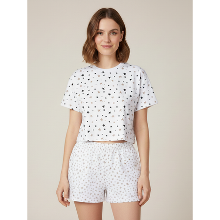 Модель включает шорты, которые идеально сочетаются с верхней частью. Пижама создает ощущение легкости и свежести. Хлопковая ткань приятна к телу и не вызывает дискомфорта. Она прекрасно удерживает тепло, но в то же время не перегревает в теплую погоду.