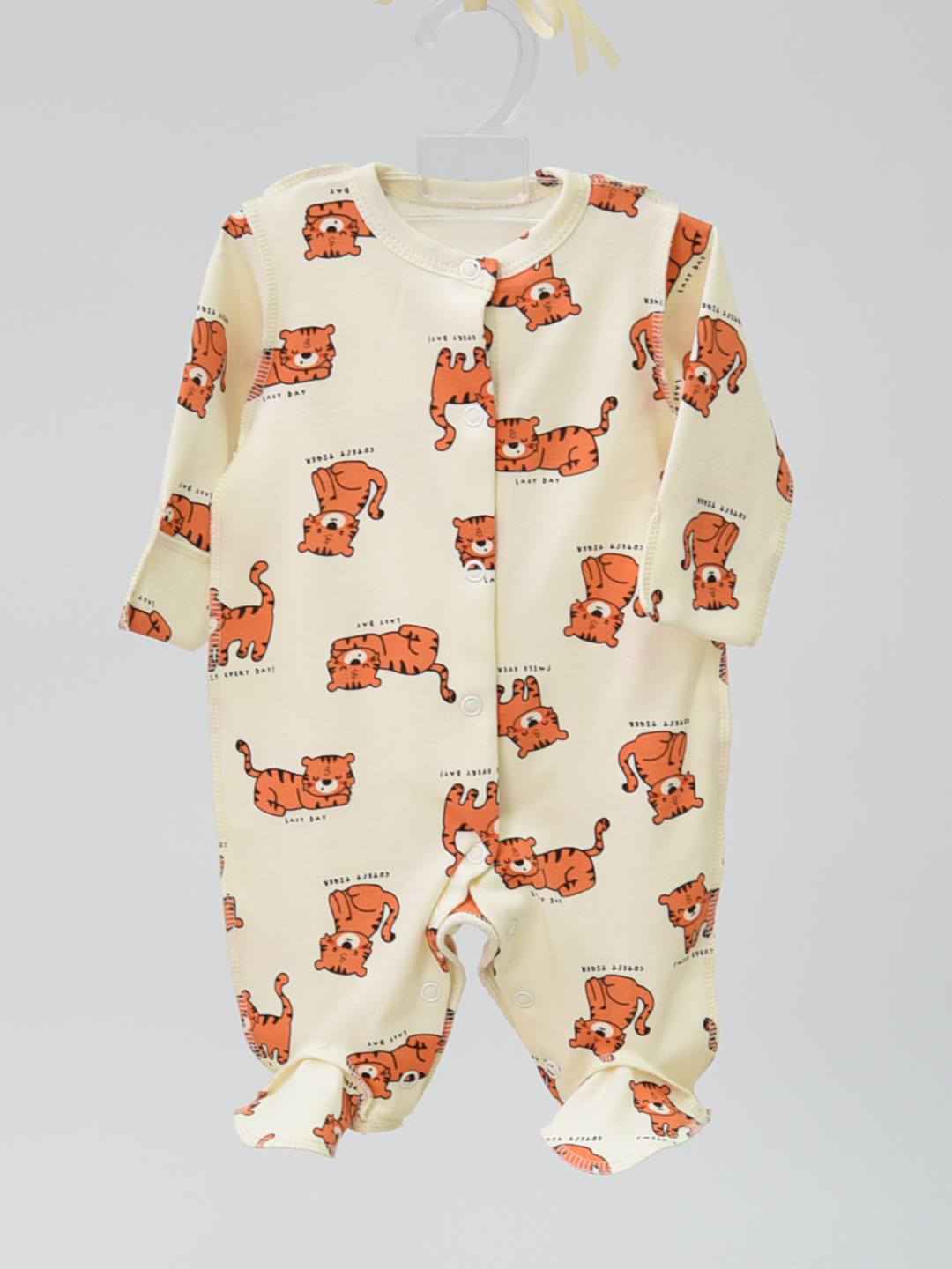 Детский слип для новорожденных и малышей выполнен из гипоаллергенного 100% хлопка, материал средней плотности, нежный и эластичный, пропускает воздух и сохраняет тепло.