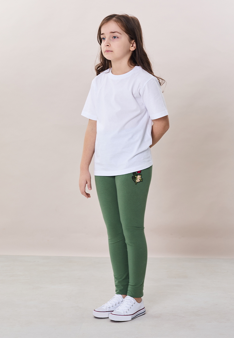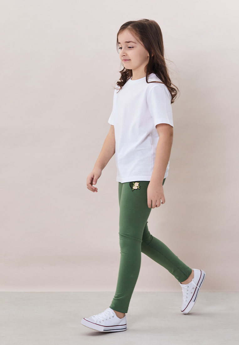 на легинсах иммется декоративная нашивка, которая придает леггинсам элегантность и выделяет их в качестве элемента стиля в гардеробе девочки. Модель подчеркивает чистоту линий и универсальность использования, что делает её отличным выбором для спорта, повседневной и домашней одежды. Состав из 90% хлопка и 10% эластана обеспечивает не только комфорт ношения, но и долговечность изделия. Тип посадки и универсальная ростовка позволяют адаптировать леггинсы под различные фигуры и рост девочек, делая их универсальным выбором для многих малышек. Отсутствие утеплителя делает эти лосины идеальными для теплого климата или как часть комфортной домашней одежды.