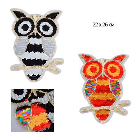 Аппликации пришивные TBY.FLA03 СОВА с двусторонними пайетками 22х26см цв.черн/сер/бел уп.2 шт