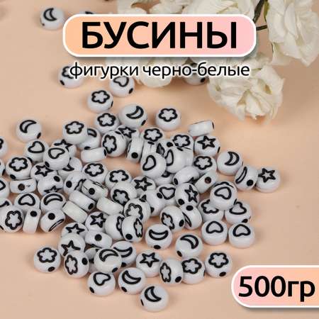Бусины фигурки черно-белые арт. M4H-B008.1 уп.500г