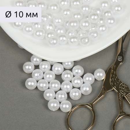 Бусины MAGIC 4 HOBBY круглые перламутр 10мм цв.033 белоснежный уп.50г (96шт)