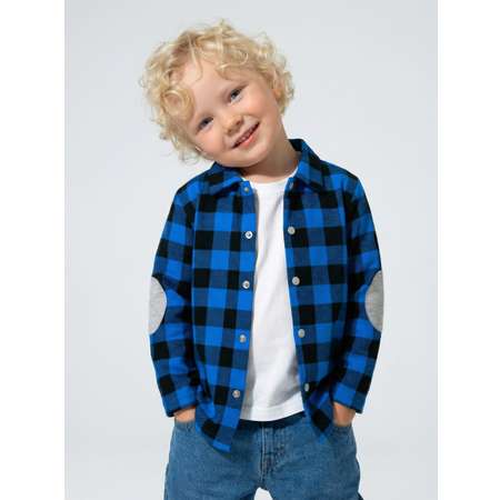Рубашка с длинным рукавом для мальчика в клетку. Рубашка для мальчика изготовлена из ткани футер 2хнитка с начесом 100% хлопок. На локтях декоративная "заплатка"-нашивка серого цвета. Рубашка детская с застежкой кнопки. Отлично подойдет для садика, дома и прогулок в прохладное время года.