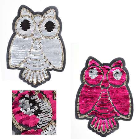 Аппликации пришивные TBY.FLA09 СОВА с двусторонними пайетками 14х20см цв.серебро уп.2 шт