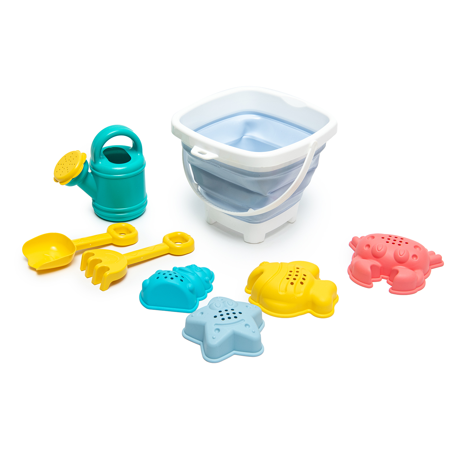 Набор со складным ведерком прекрасно подходит для игр как с песком, так и с водой-прекрасный вариант как для песочницы, так и для бассейна.