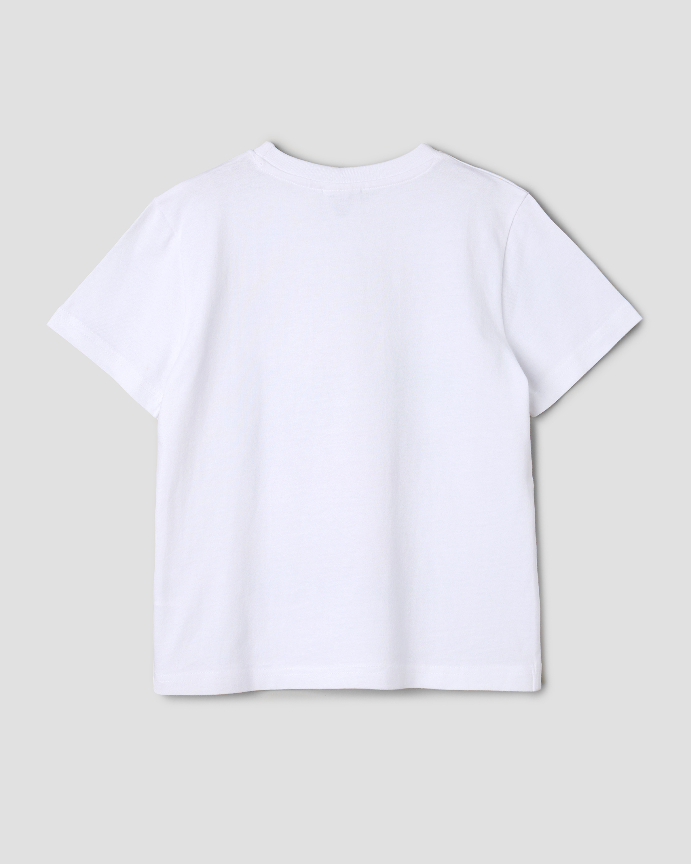 Белая футболка для мальчика Super Wings, декорированная красочным принтом с персонажами мультфильма.