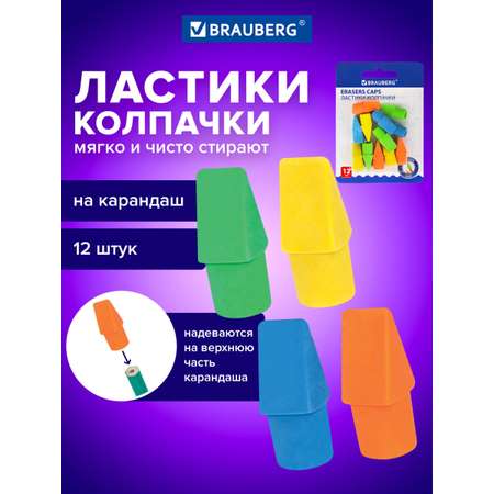 "Подарите себе радость безупречного письма с ластиками-колпачками BRAUBERG ""Eraser Caps""! Этот набор из 12 штук в ярких цветах ассорти станет идеальным дополнением к вашим письменным принадлежностям. Каждый школьный ластик выполнен из безопасного термопластичного материала, что гарантирует легкое и чистое стирание чернографитного карандаша без повреждения бумаги и образования пыли. Размеры ластиков (25х12х12 мм) идеально подходят для точного удаления ошибок, что делает их незаменимыми в канцелярии для школы.