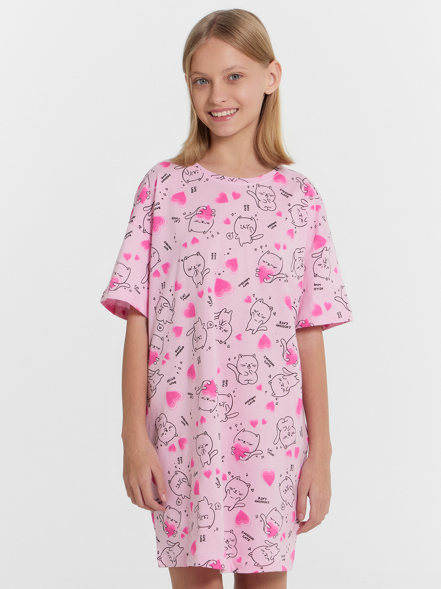 - Хорошая ночная сорочка, милый принт с котиками. Я взяла на 158 рост, а дочка 150 см, поэтому сорочка, конечно же, великовата, но нам это не принципиально, потому, что спать просторнее и дочка быстро растёт))) Качество отличное, не первый раз беру эту фирму. Рекомендую!