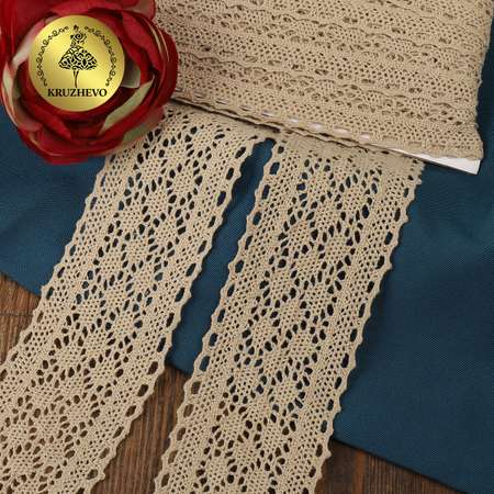 Цена на Кружево вязаное хлопковое KRUZHEVO 60мм цв.светло-бежевый уп.10м - 1101 ₽.