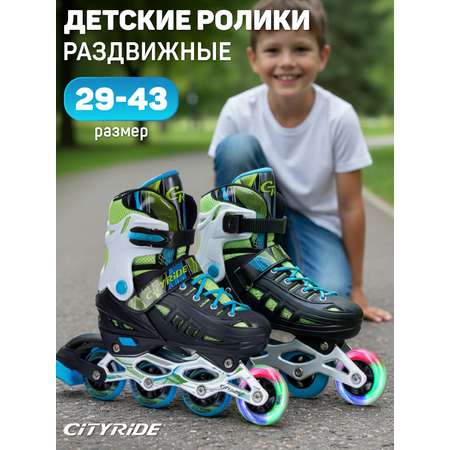 Роликовые коньки CITYRIDE - яркий и безопасный спортивный инвентарь для активного отдыха. Полиуретановые колеса. Стильный дизайн и регулировка размера обеспечат удовольствие от каждой поездки. Первое колесо светится. Коньки раздвижные (до 5 размеров) Мягкий внутренний сапожок для комфортного катания и полностью пластиковый внешний ботинок для контроля и маневренности.
