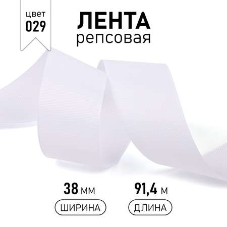 Лента Ideal репсовая в рубчик шир.38мм цв. 029 белый уп.91,4м