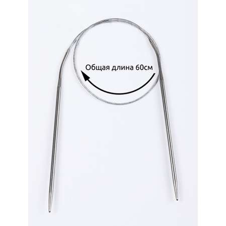Общая длина круговых спиц: 60 см. Длина спицы: 14 см. Диаметр тросика: 1,6 мм.