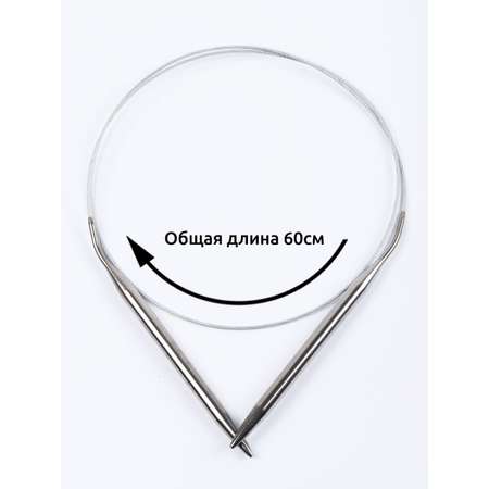 Общая длина круговых спиц: 60 см. Длина спицы: 14 см. Диаметр тросика: 1,6 мм.